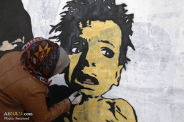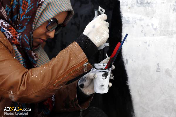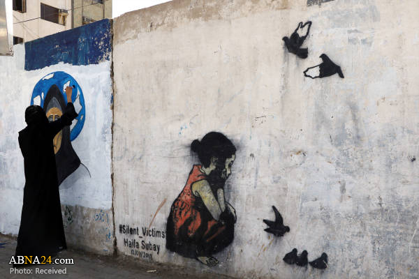AhlulBayt News Agency (ABNA): Haifa Sabiei, Yemeni woman artist draws anti-war paintings on on the walls of Sana'a, the capital of Yemen.