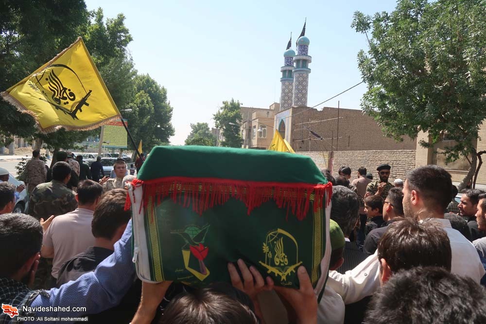 The pure body of the Fatemiun battalion shrine defender martyr "Morad Ali Khavari" held in Pishva on Thursday.