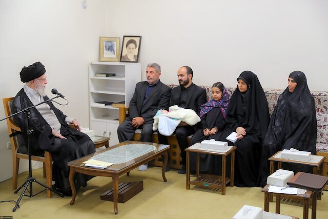 During this meeting, Imam Khamenei referred to the prominant status of these martyrs, saying, "All martyrs have a high status and enjoy divine blessings in God’s presence. But the martyrdom of these dear individuals who were defending our country and nation in direct confrontation with the Zionist regime – the most malevolent enemy of Islam – is a martyrdom of great significance and prominence."